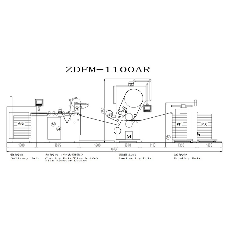 Helytervezés: Az automata fóliaeltávolító laminálógép teljes hossza körülbelül 9,4 méter, és további tároló- és csereterületet kell fenntartani az elválasztófólia-újrahasznosító tekercsek számára. A tekercsoldalon legalább 2 méter üzemi csatorna fenntartása javasolt.